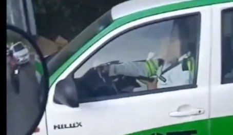 «En atención a denuncia ciudadana, sancionamos a gestor de tránsito por manipular su teléfono celular al conducir. Estamos comprometidos con la seguridad vial de la población y el cumplimiento de la normativa de tránsito», manifestó la institución.