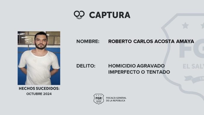 Roberto Carlos Acosta Amaya fue detenido por orden de la Fiscalía General de la República (FGR), acusado de intentar asesinar a una víctima en Tamanique, La Libertad Costa.