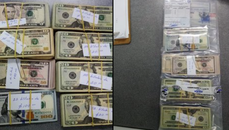 Al revisar su interior, encontraron $11,210 dólares, cuya procedencia no pudo ser justificada.