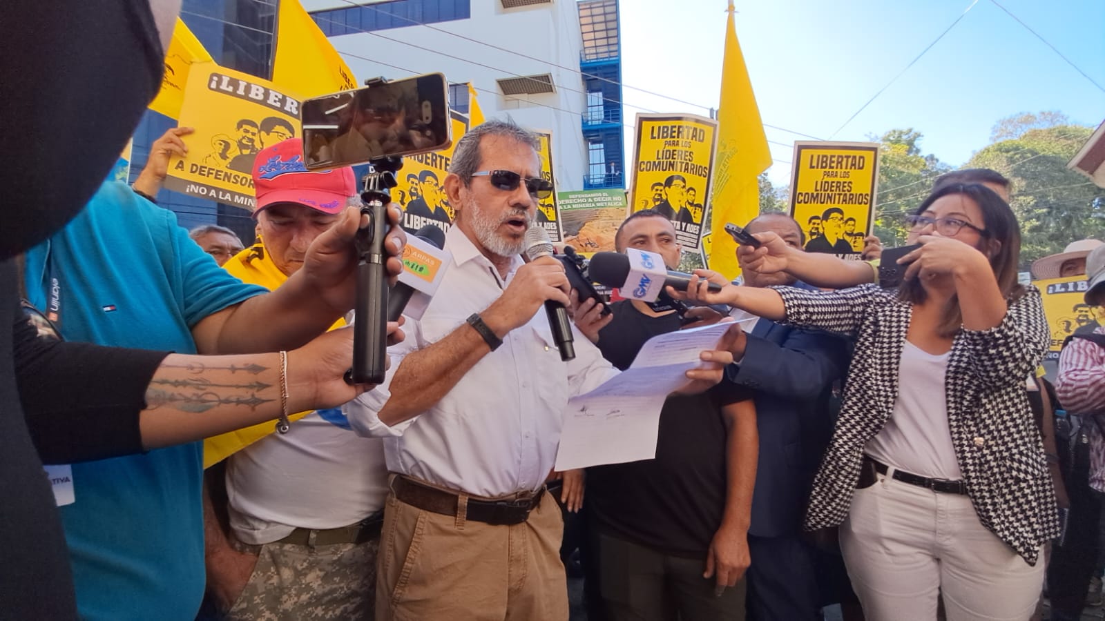 Previo al desarrollo de la diligencia decenas de miembros de diferentes organizaciones sociales, ambientalistas y de la Comunidad Santa Marta de Cabañas se concentraron frente al Centro de Justicia de Ciudad Delgado para reiterar su desacuerdo ante la repetición del juicio, que fue ordenado por la Cámara Penal de Cojutepeque tras una apelación del Ministerio Público Fiscal sobre el fallo del Tribunal de Sentencia de Sensuntepeque, el cual absolvió a todos los implicados de los delitos señalados.