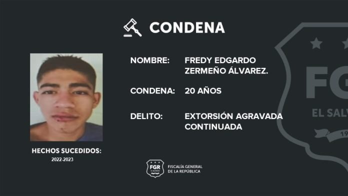El Tribunal Segundo de Sentencia de Santa Ana condenó a 20 años de prisión a Edgardo Zermeño Álvarez por el delito de extorsión.