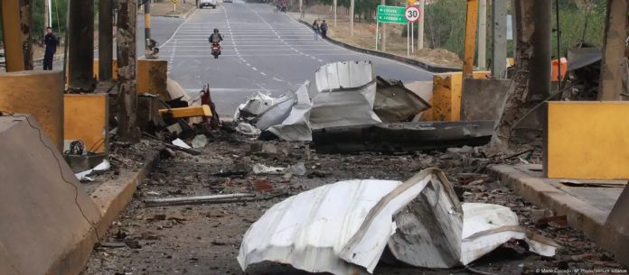 Reporteros de la AFP observaron el peaje en Villa del Rosario destruido y a uniformados vigilando entre los escombros. En Cúcuta, un puesto de la policía tenía varios agujeros en su infraestructura causados por armas de fuego.