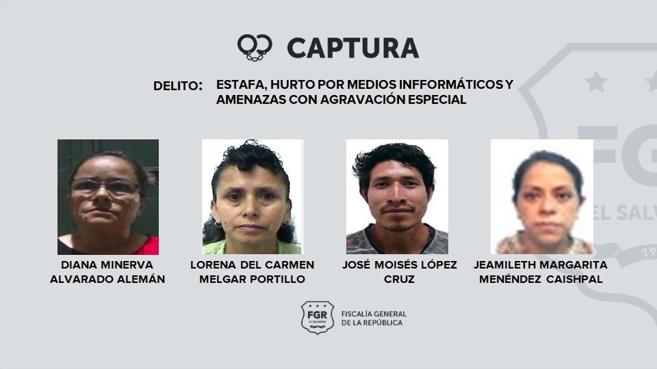 Fue a través de un operativo y allanamientos ejecutados en Cuscatlán, Ahuachapán, La Libertad y San Salvador que se logró capturar a los delincuentes que utilizaban redes sociales para engañar a sus víctimas.