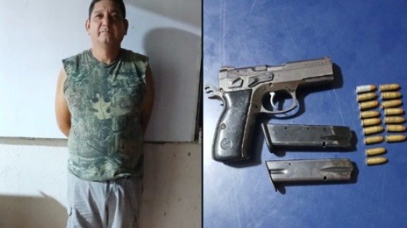 El detenido fue identificado como Pastor Hernández Alfaro, de 51 años, quien, según la prueba de alcoholemia, tenía 258 grados de alcohol en sangre. Durante su arresto, las autoridades le decomisaron un arma de fuego calibre 9 milímetros con 16 cartuchos.