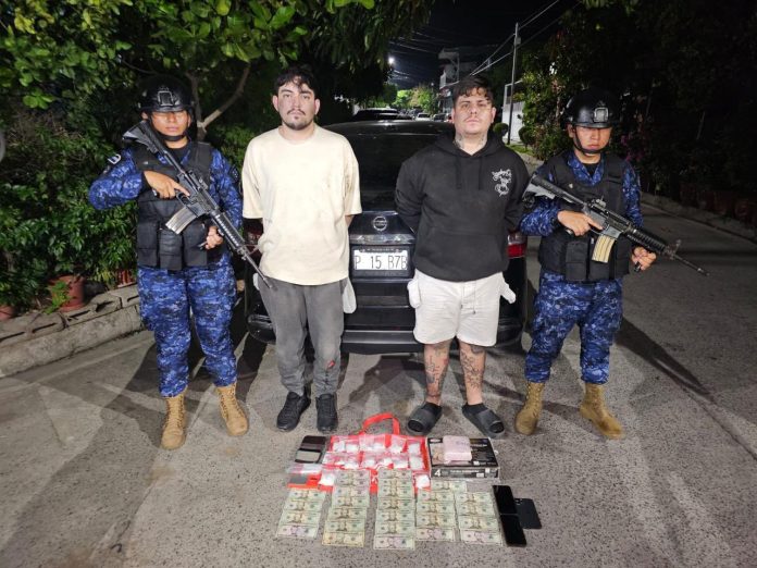 Soldados de la Fuerza Armada ubicaron este viernes en la Urbanización Villa Constitución, Nejapa, a Guillermo Josué Cerón García y Jhonathan David Peñate Rosales, a quienes se les incautó 18 porciones de cocaína, $590 en efectivo y 3 teléfonos celulares.