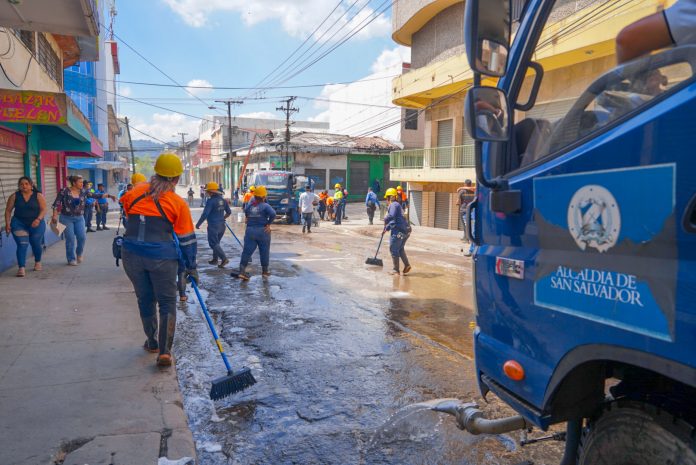 La Alcaldía de San Salvador coordinó una intervención de limpieza de 300 mil metros cuadrados de espacios recuperados durante la la Fase 5 Etapa 2 del Plan de Rehabilitación del Centro Histórico capitalino.