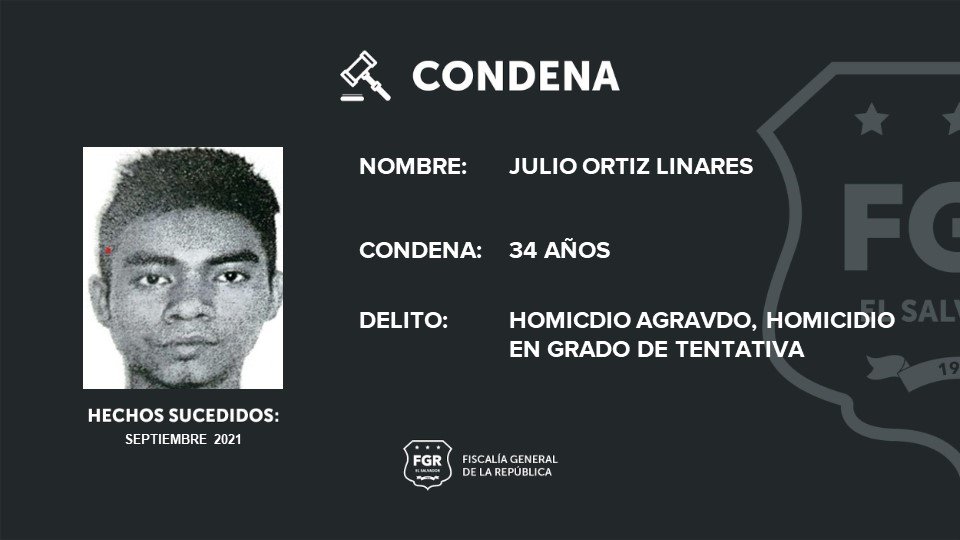 Un sujeto identificado como Julio Ortiz Linares fue sentenciado a 34 años de prisión por los delitos de homicidio agravado y homicidio en grado de tentativa.