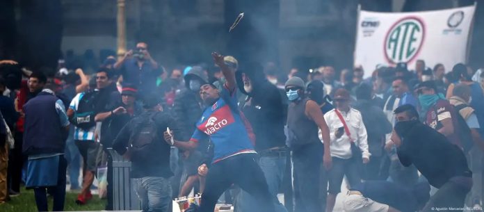 Las detenciones se produjeron luego de que las fuerzas de seguridad dispararan con balas de goma y gases lacrimógenos a los miembros de sindicatos e hinchas de fútbol que acudieron a la convocatoria para apoyar a los jubilados.