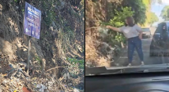 Este domingo, una mujer fue sorprendida arrojando desechos en un botadero clausurado por la Alcaldía de San Salvador Centro, ubicado sobre la calle a Mariona, en el Distrito Mejicanos.