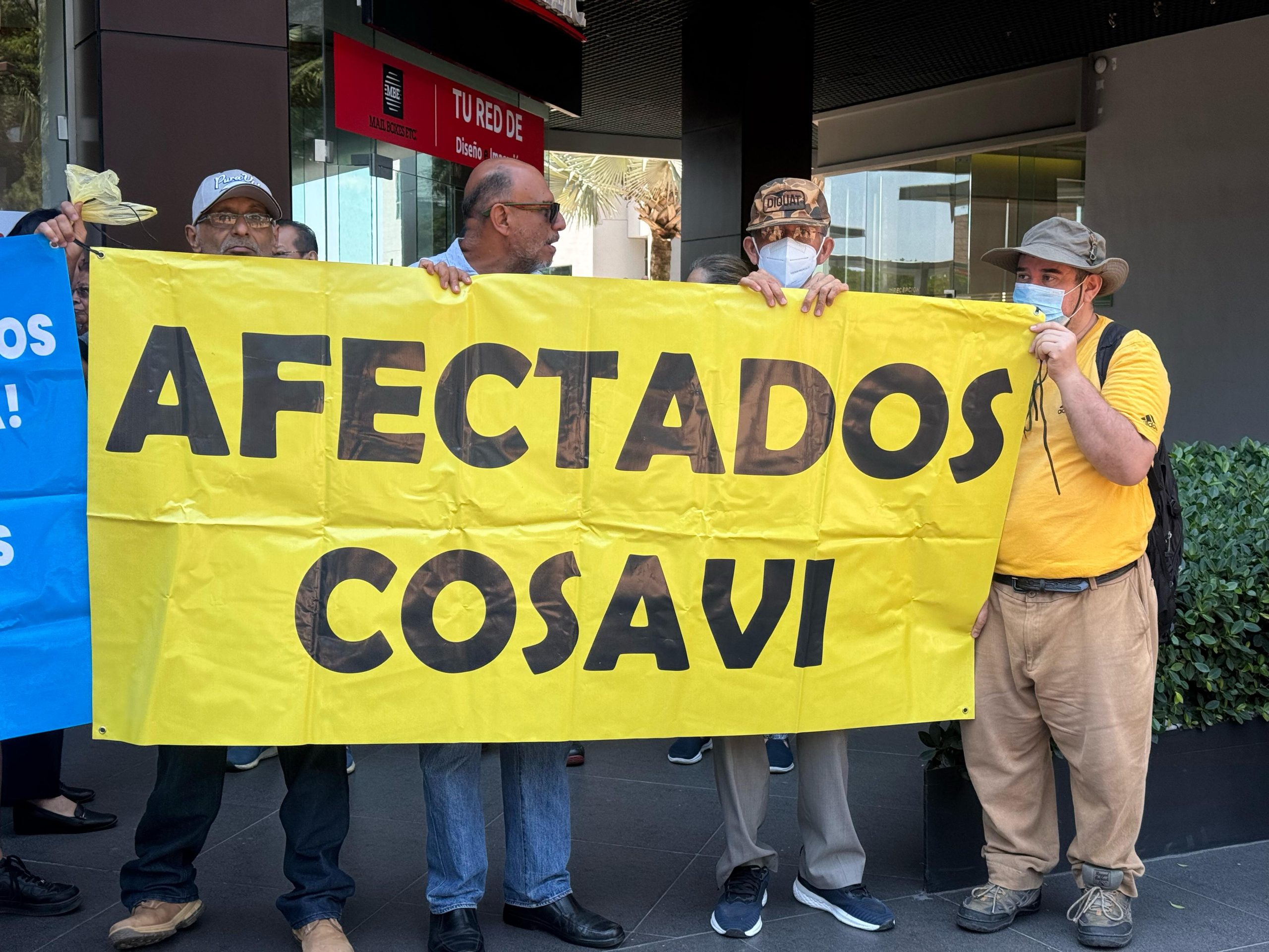 Un grupo de personas afectadas por el desfalco en la Cooperativa de Ahorro y Crédito Santa Victoria de R.L. (COSAVI) se manifestó este lunes frente a las oficinas del Banco Interamericano de Desarrollo (BID) en El Salvador, donde solicitaron una audiencia para exponer su situación.