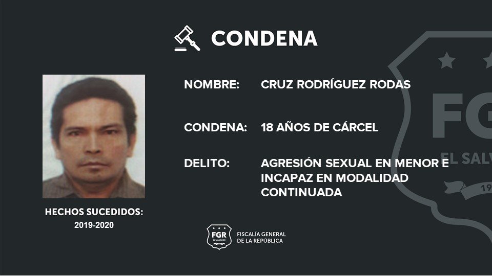 Gracias a los elementos de prueba documental, pericial y testimonial que presentó la FGR ante el Tribunal de Sentencia de Chalatenango, se logró establecer la participación de Rodas en los hechos antes mencionados y fue declara culpable.