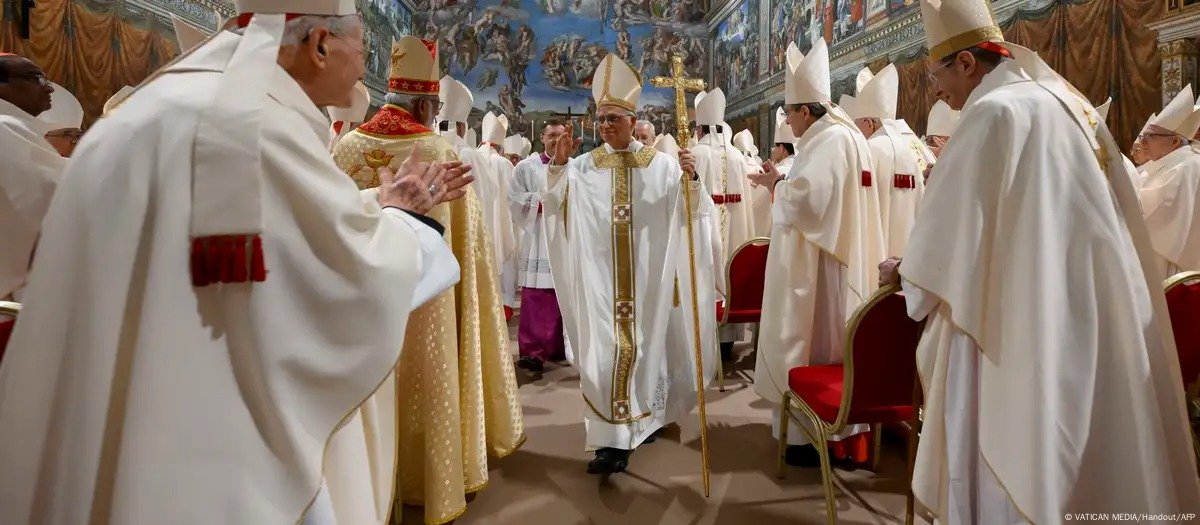 Nacido en Estados Unidos y nacionalizado peruano, León XIV ofició este viernes (9.05.2025) su primera misa al frente de la Iglesia católica, en una ceremonia privada en la Capilla Sixtina junto a los cardenales electores, según la transmisión del Vaticano.