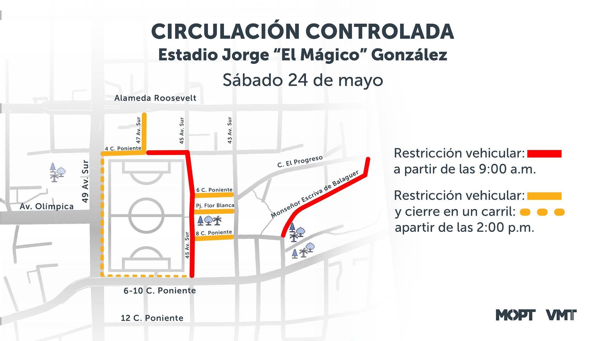 Además, el VMT desplegará a más de 30 gestores de tránsito, quienes trabajarán en conjunto con agentes de la Policía Nacional Civil (PNC) para coordinar el flujo vehicular.