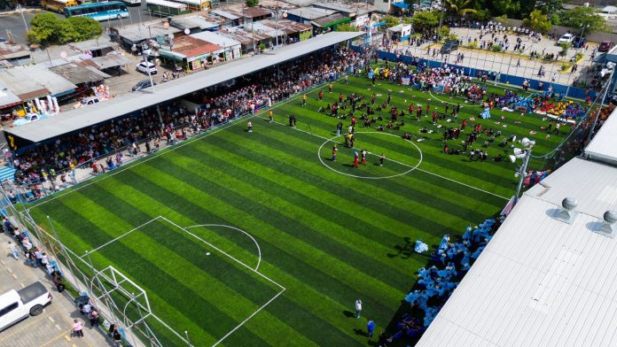 Entre las principales adecuaciones realizadas se incluyen la nivelación de la base de la cancha, la instalación de grama sintética nueva, mejoras en vestidores y baños, pintura general del recinto y el arreglo del sistema de luminarias, permitiendo así su uso tanto de día como de noche.
