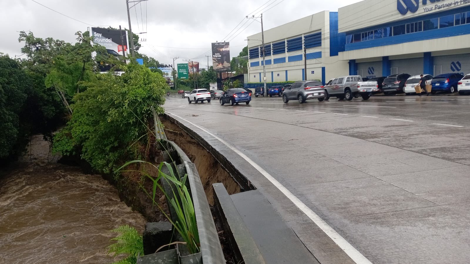 El Fondo de Conservación Vial (Fovial) reportó este lunes afectaciones en un costado de la carretera Panamericana, a la altura de Antiguo Cuscatlán, en el sentido hacia San Salvador, a raíz del incremento del caudal de la quebrada El Piro debido a las intensas lluvias.