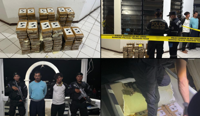 Este jueves, la Policía Costera realizó la intervención de una lancha a 10 millas náuticas de la Playa Cangrejera, La Libertad, la cual transportaba 134 kilos de cocaína valorada en $3.36 millones de dólares.