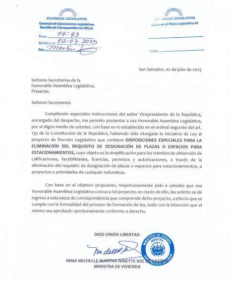 El Ministerio de Vivienda presentó ante la Asamblea Legislativa una iniciativa para eliminar el requisito de proyectar y construir plazas o espacios para estacionamientos en proyectos o actividades de cualquier naturaleza.