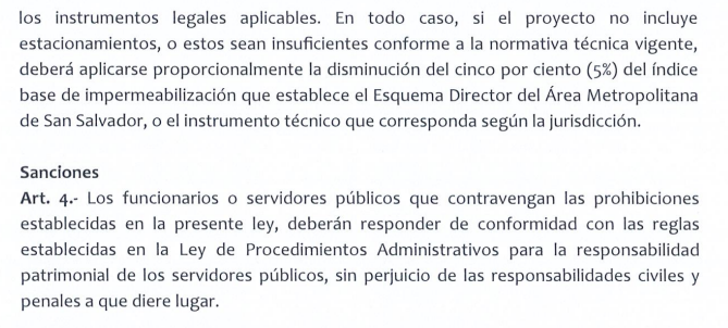 El proyecto de ley establece que los funcionarios públicos que exijan indebidamente el requisito de estacionamientos deberán responder conforme a la Ley de Procedimientos Administrativos, sin perjuicio de otras responsabilidades civiles o penales.