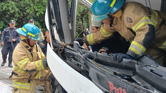 En el percance se vieron involucrados un bus y un camión, lo que provocó que varias personas resultaran heridas. Dos de los ocupantes quedaron atrapados entre los hierros retorcidos de los vehículos y fue necesaria la intervención del Cuerpo de Bomberos para rescatarlos utilizando equipo hidráulico especializado.