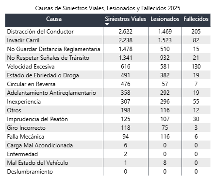 ONASEVI señaló que la “distracción del conductor” y la “invasión de carril” continúan como los factores más frecuentes asociados a los siniestros viales, mientras que el número de casos relacionados con el “estado de ebriedad o consumo de drogas” suma 491 en total, con 19 fallecidos hasta la fecha.