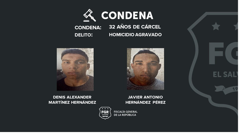 El Tribunal Primero de Sentencia de Santa Ana impuso una condena de 32 años de prisión a dos sujetos declarados culpables del delito de homicidio agravado en perjuicio de dos personas, en un hecho ocurrido el 24 de febrero de 2022.
