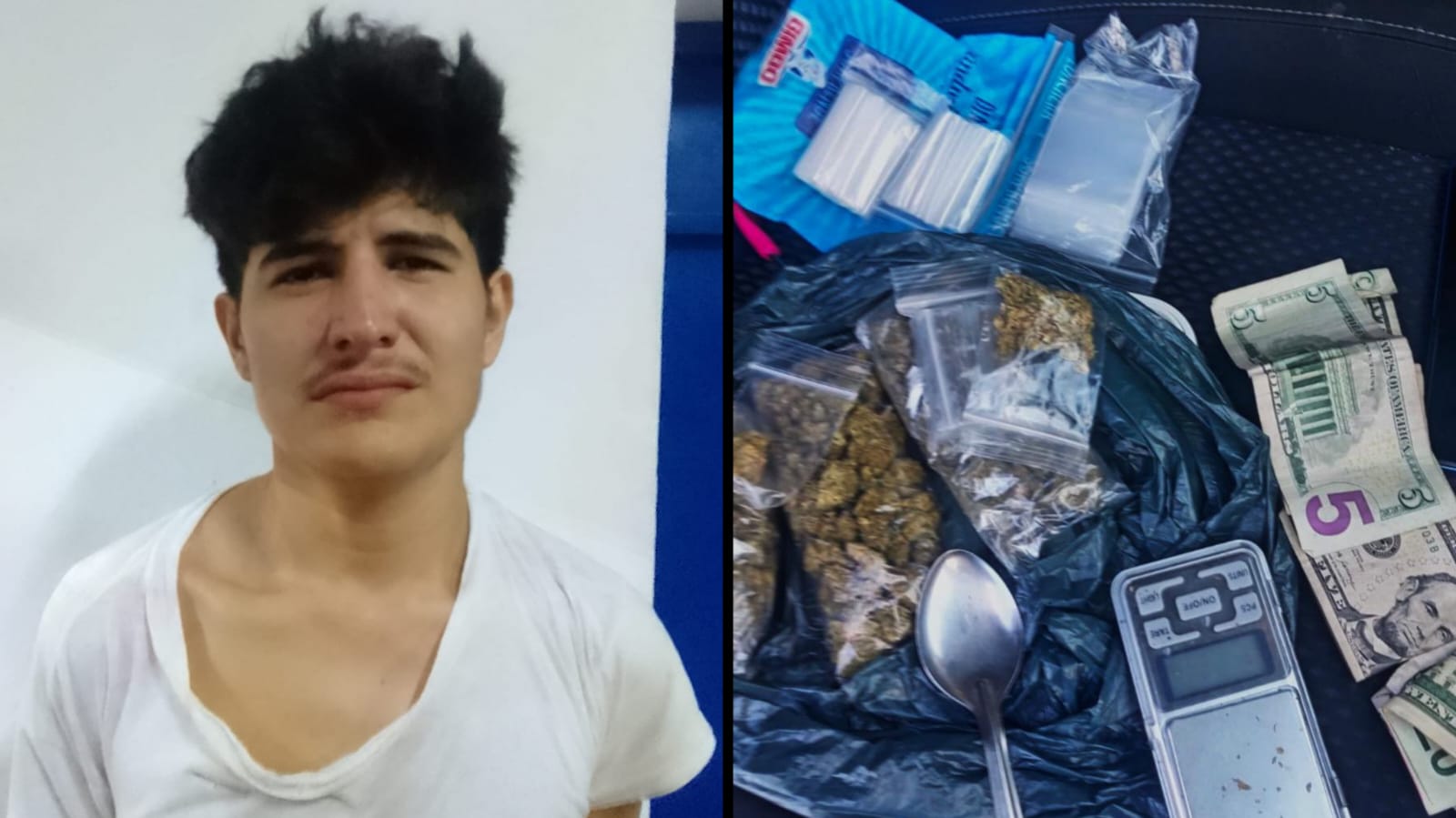 Durante la inspección del vehículo, las autoridades incautaron porciones de marihuana, una balanza y dinero en efectivo.