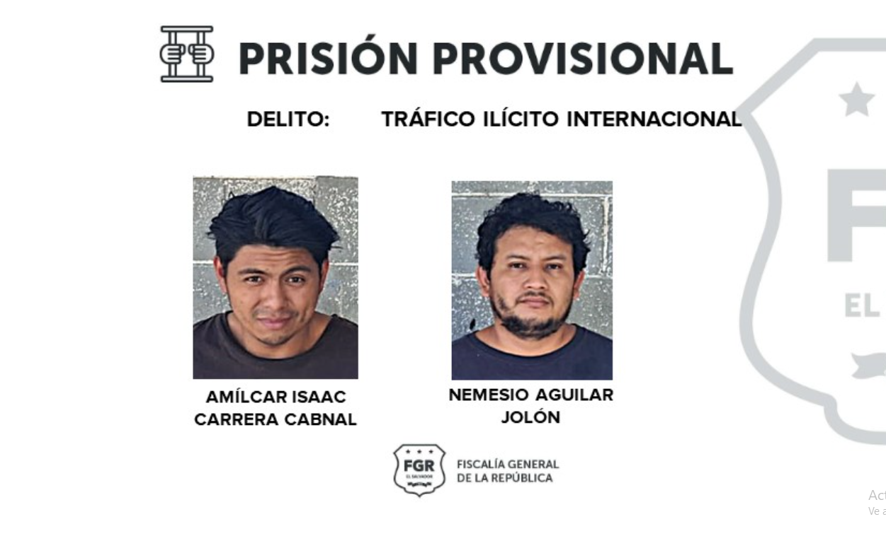 La Fiscalía General de la República (FGR) logró que los guatemaltecos: Nemesio Aguilar Jolón y Amílcar Isaac Carrera Cabnal, enfrenten juicio por el delito de tráfico ilícito internacional. Los imputados seguirán detenidos.
