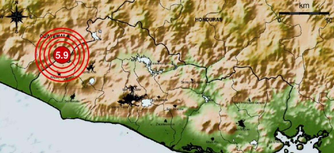 Reportan sismo de magnitud 5.9 con epicentro en Guatemala, sentido en El Salvador