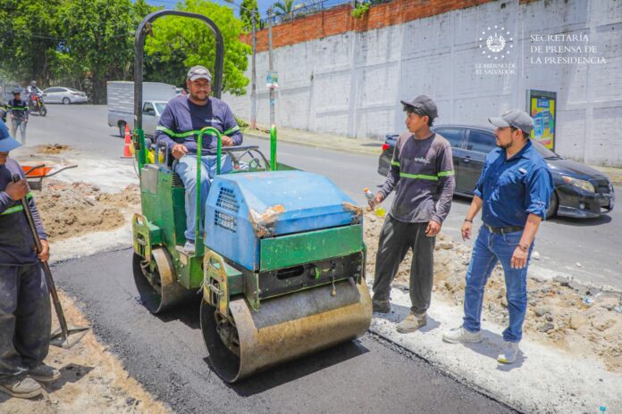 El presidente de ANDA, Jorge Castaneda, supervisó, este jueves, la colocación de asfalto en la última etapa del proyecto, que consistía en la instalación de 660 metros de tubería en el sector entre la gasolinera Texaco Loma Linda y el redondel Árbol de la Paz, en sentido de bajada sobre la calle antigua a Huizúcar.