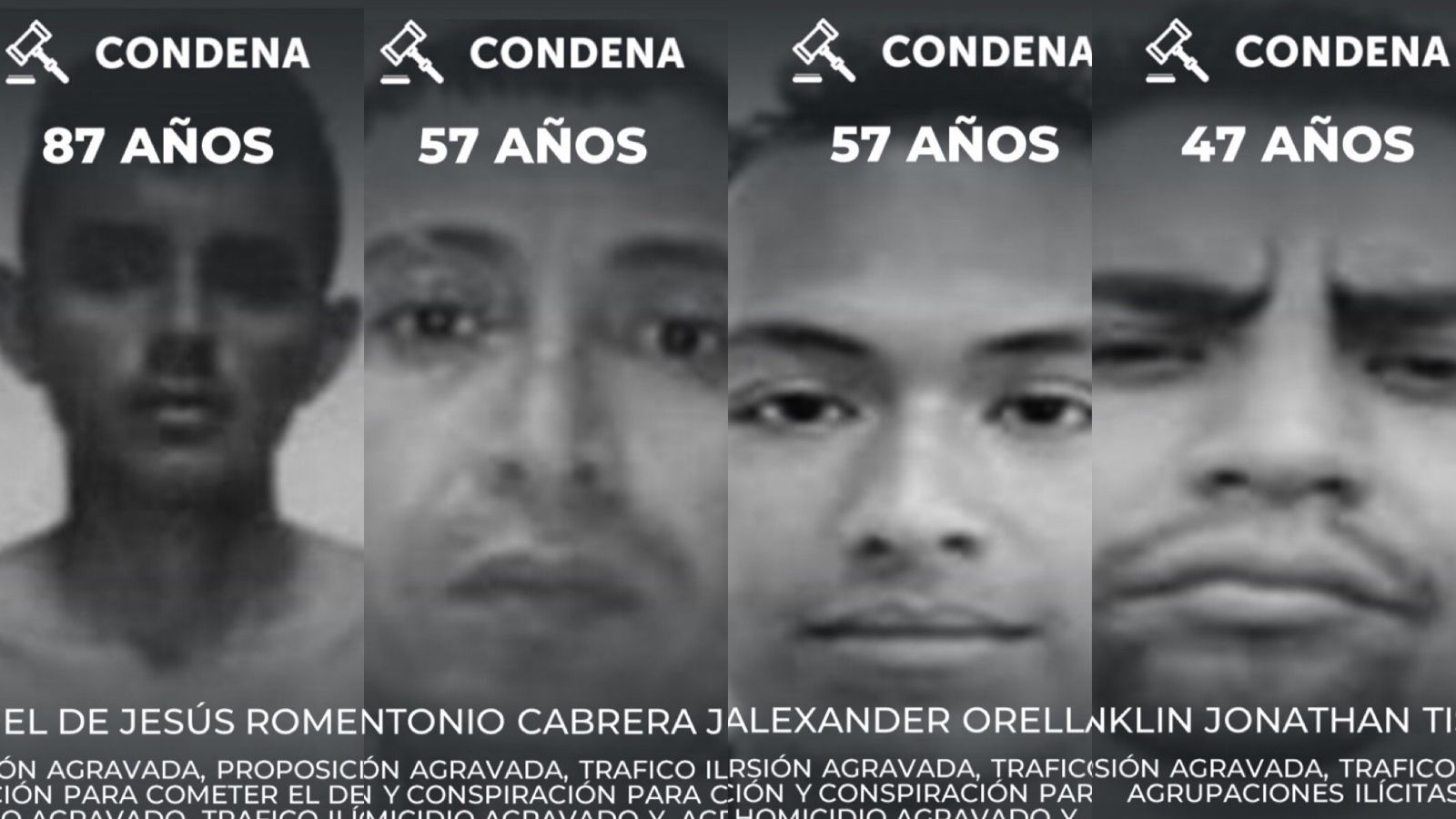 Los condenados son Miguel Jesús Romero, Jorge Antonio Cabrera Jiménez, Aníbal Alexander Orellana García y Franklin Jonathan Tisnado. De acuerdo con las investigaciones fiscales, estos sujetos operaban en distintos sectores del oriente del país, donde cometieron delitos como extorsión, tráfico de drogas y conspiración para cometer homicidios.