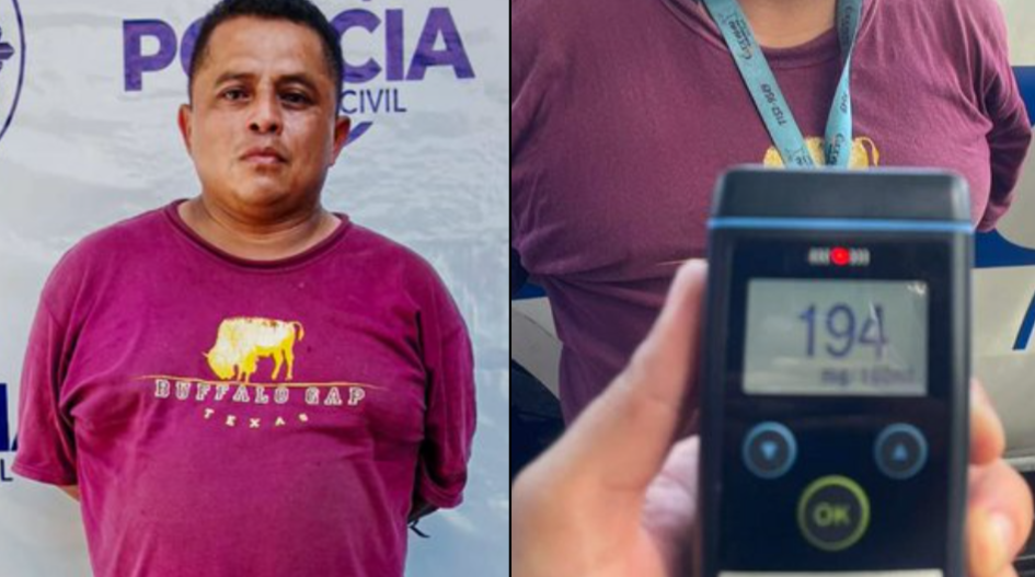 La Policía Nacional Civil (PNC) informó que Héctor Alexander Osorio Pineda fue intervenido mientras conducía un vehículo en el cantón Dolores de Apulo con un nivel de 194° de alcohol en la sangre.