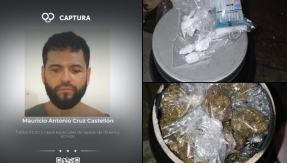 El detenido, identificado como Mauricio Antonio Cruz Castellón, presuntamente tenía en su poder varias porciones de marihuana, 25 porciones de cocaína, una balanza electrónica, bolsas plásticas utilizadas para la comercialización de droga, $8,010 en efectivo y un vehículo.