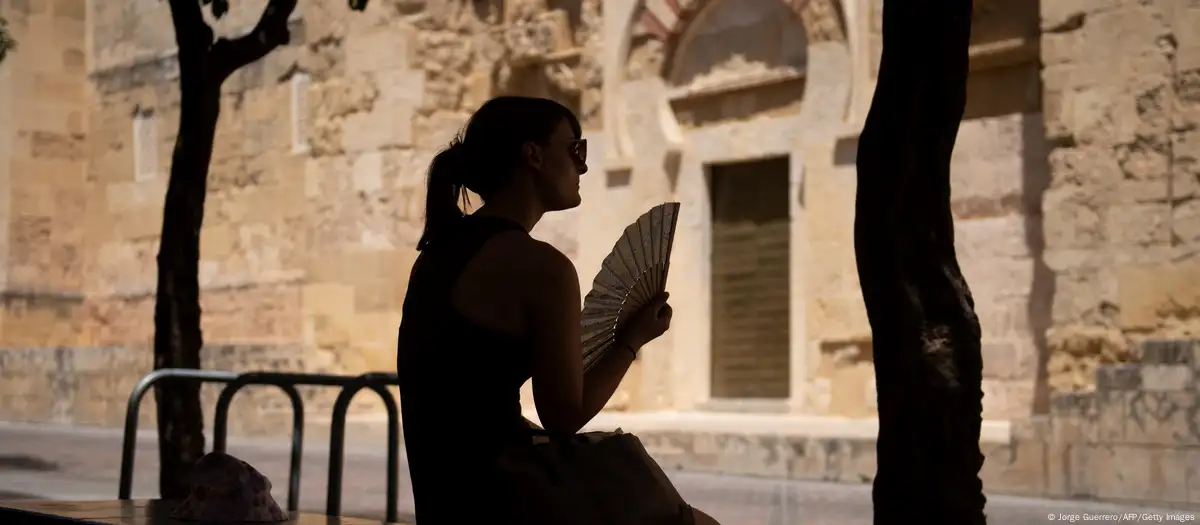 Una mujer se abanica frente a los muros de la Mezquita de Córdoba el pasado 3 de agosto. Imagen de referencia. Foto: Cortesía.