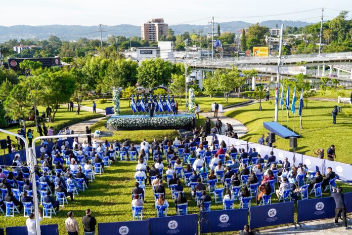 La Alcaldía de San Salvador Centro inauguró este lunes el Mes Cívico con un acto frente a la monumental bandera de El Salvador en la plaza Masferrer, en el marco de los 204 años de independencia.