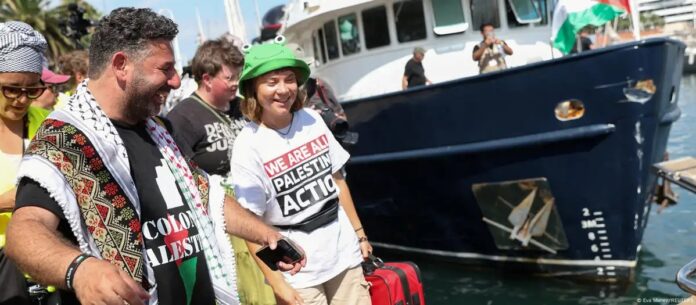 En Sidi Bou Said, cerca de Túnez, más de mil personas con banderas palestinas recibieron a la flotilla, que está compuesta de unas 20 embarcaciones y en ella viaja la ambientalista Greta Thunberg, entre otras personalidades.
