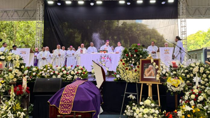 La misa de cuerpo presente se realizó en el polideportivo de la UCA y fue presidida por el Arzobispo de San Salvador, Monseñor José Luis Escobar Alas.