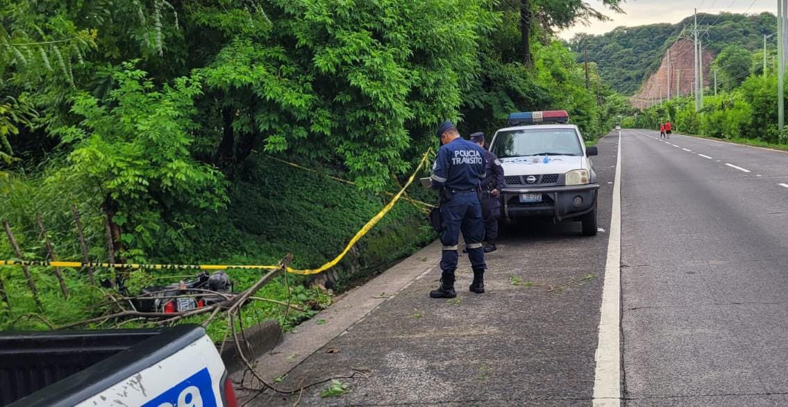 La Policía Nacional Civil (PNC) informó de forma preliminar que el motociclista «perdió el control y se salió de la carretera».