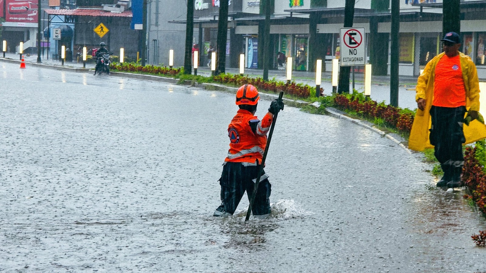 “Equipos de Desechos Sólidos y de Protección Civil de El Salvador realizan labores de limpieza en el perímetro de la Zona Rosa, Zona 3 de la capital, para desobstruir los tragantes y alcantarillas, y drenar el agua acumulada”, señalaron las autoridades.