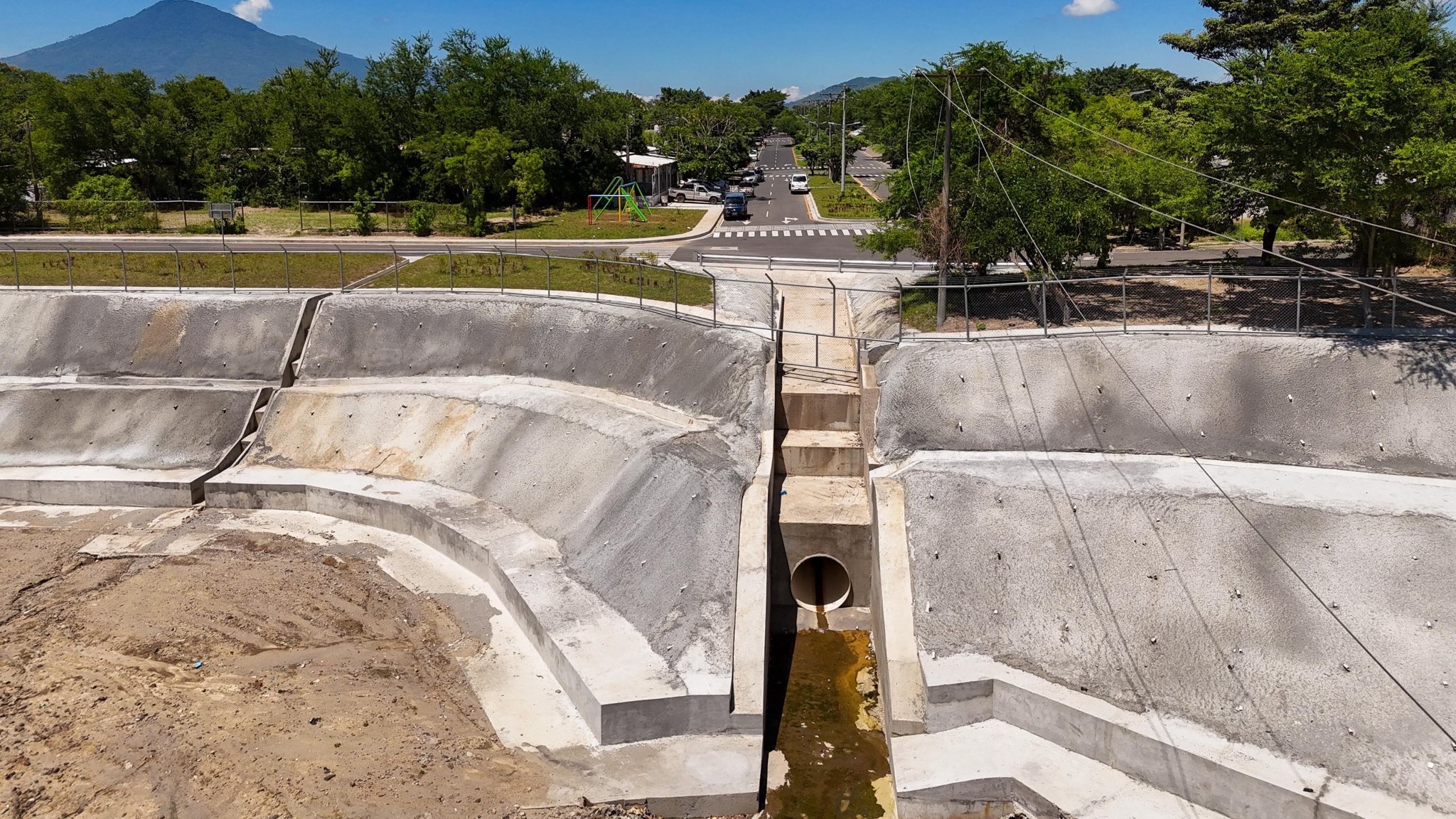 El Ministerio de Obras Públicas (MOP) entregó este viernes las obras de mitigación desarrolladas en el Distrito Italia, en Tonacatepeque, San Salvador Este, donde fueron eliminadas cuatro cárcavas que representaban un riesgo para las familias de la zona. Tres de ellas estaban ubicadas a un costado de la avenida Escorial y una detrás del pasaje 8.