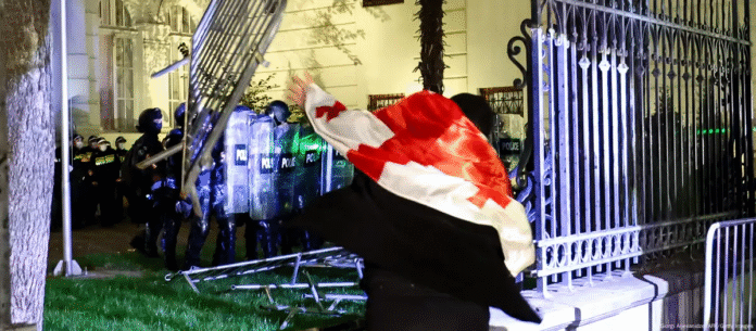 Efectivos antidisturbios rechazaron hoy (04.10.2025), con empleo de gases lacrimógenos y cañones de agua, un intento de asalto al palacio presidencial tras un mitin opositor en el centro de la capital georgiana que demandaba la dimisión del Gobierno.
