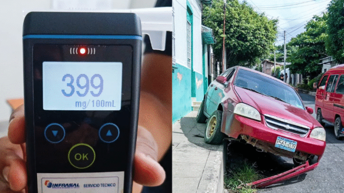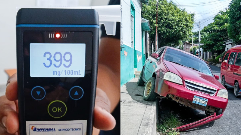 El segundo detenido es Amner Aldair Pérez Amaya, de 29 años, quien conducía en estado de ebriedad sobre el barrio El Santuario, en San Vicente Norte. La prueba de alcotest arrojó 399 grados de alcohol.