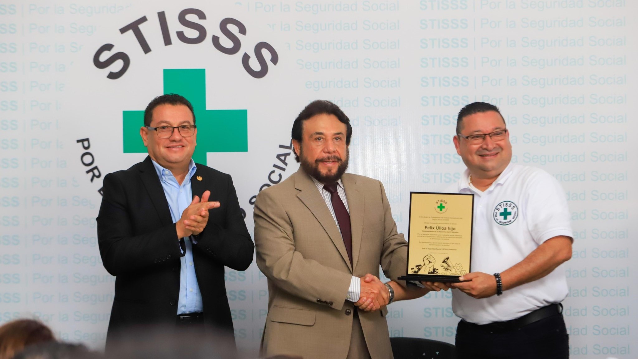 El Vicepresidente de la República, Félix Ulloa hijo, fue homenajeado por el Sindicato de Trabajadores del Instituto Salvadoreño del Seguro Social (STISSS) en un acto de reconocimiento a su destacada trayectoria profesional, su compromiso con la defensa de los derechos laborales y su contribución a la justicia social en El Salvador.