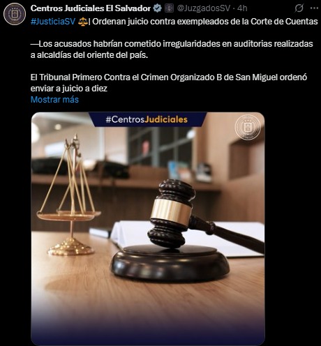 El Tribunal Primero Contra el Crimen Organizado B de San Miguel ordenó enviar a juicio a diez exempleados de la Corte de Cuentas de la República (CCR) por supuestas irregularidades en auditorías realizadas a alcaldías del oriente del país.