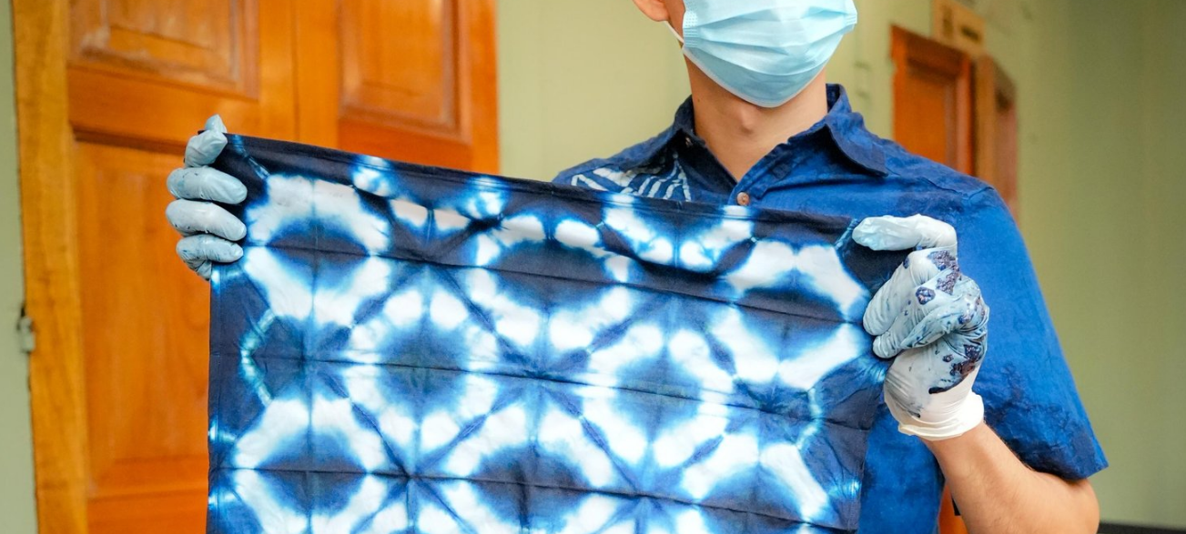 La primera se basa en costura y doblado de la tela para generar patrones complejos, mientras que la segunda consiste en aplicar cera de abeja caliente con un pincel para crear diseños en blanco que contrastan con el característico azul del añil.