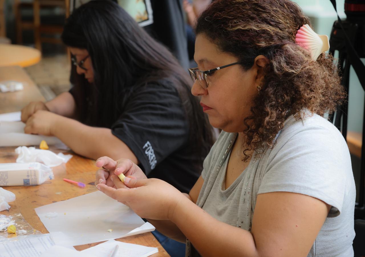 También subrayó que este tipo de talleres permite explorar habilidades específicas en distintas edades. “Esta técnica ayuda mucho a explorar la motricidad fina, ya que hay personas que prefieren elaborar accesorios con más detalles y realismo. En este taller también pueden participar niños, para que aprendan a utilizar herramientas de modelado”.
