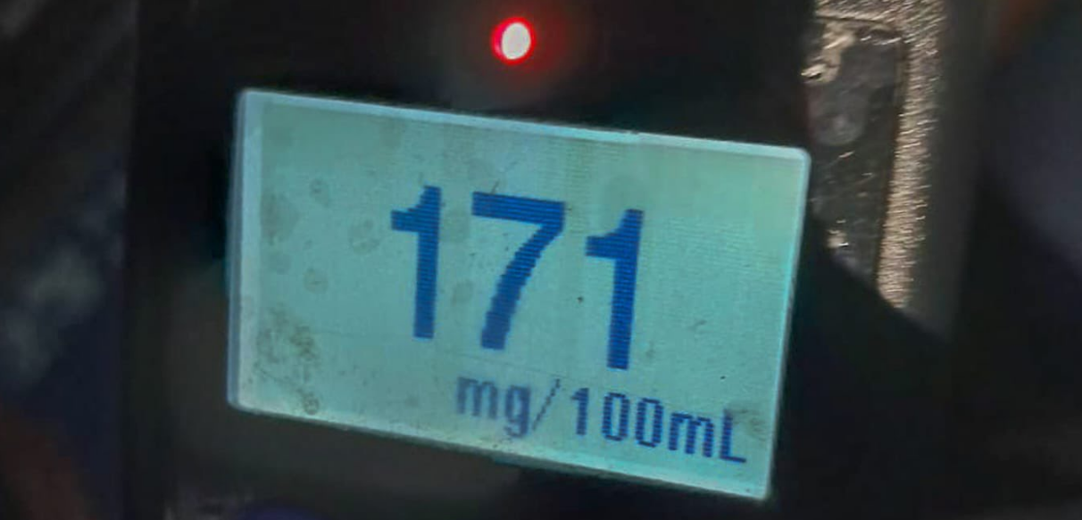 En el kilómetro 93 de la carretera Litoral, en Jiquilisco, Usulután Oeste, fue arrestado Julio César Díaz Vásquez, de 49 años, quien presentaba 281 grados de alcohol en la prueba de alcotest.
