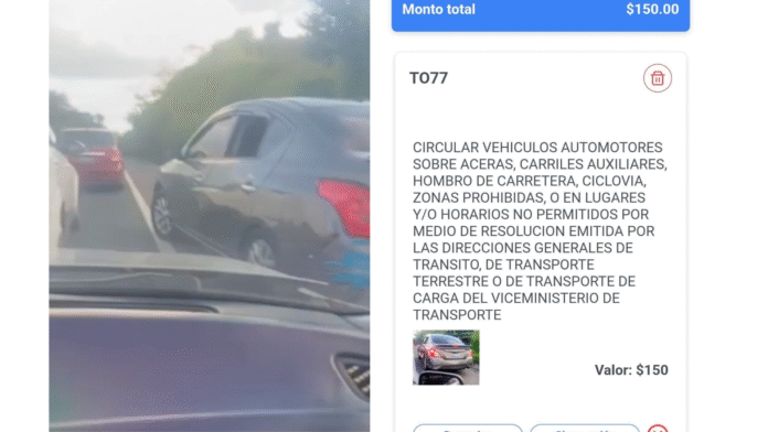 Un conductor deberá pagar una multa de $150 tras ser sancionado por el Viceministerio de Transporte (VMT), tras circular sobre el hombro de la vía sobre la carretera Panamericana Este.