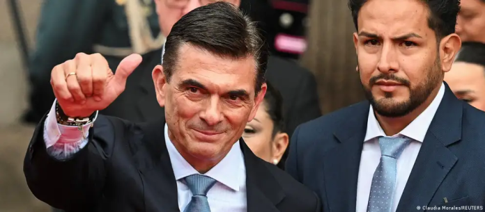 «Dios, familia y patria: ¡Sí, juro!», expresó el nuevo mandatario. El juramento se lo tomó su vicepresidente Edmand Lara, un exoficial de la policía.