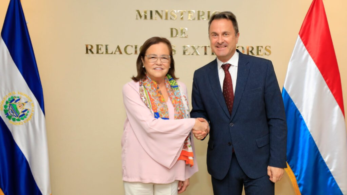 La ministra de Relaciones Exteriores de El Salvador, Alexandra Hill, sostuvo este miércoles un encuentro con el viceprimer ministro y ministro de Asuntos Exteriores y de Comercio del Gran Ducado de Luxemburgo, Xabier Bettel, quien realiza su primera visita oficial a Centroamérica.