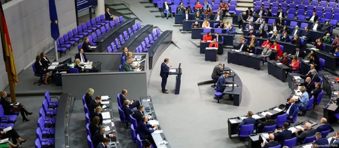 Un total de 323 diputados se mostraron a favor, 272 en contra y uno se abstuvo en la votación y, mientras tenía lugar, hubo protestas juveniles en 90 ciudades alemanas -una llamada «huelga escolar»- bajo el lema de «No queremos ser carne de cañón».